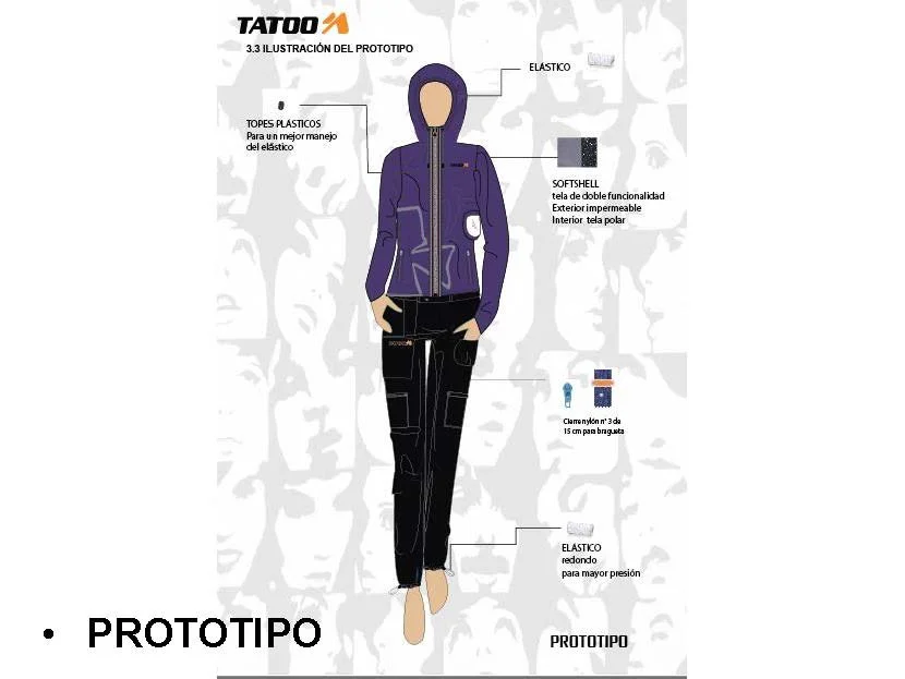 “DESIGN OF SPORTS CLOTHING FOR ROCK CLIMBING WITH SPOT EMERGENCY DEVICE TECHNOLOGY, FOR WOMEN AIMED AT THE OUTDOOR LINE OF THE COMPANY TATOO CIA. LTDA. IN THE CITY OF QUITO”